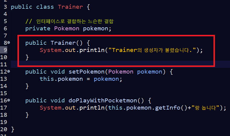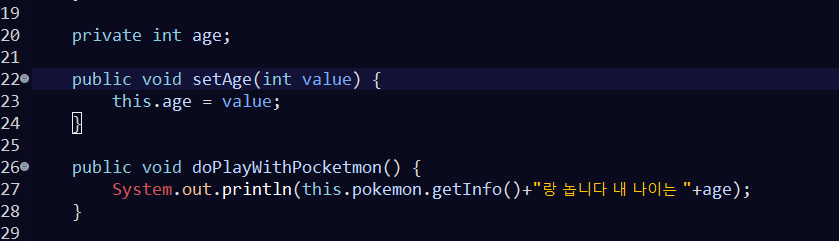 Trainer 클래스에 setAge() 메소드를 만들어 놓을게요