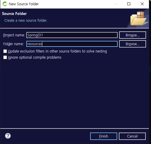 Source Folder를 하나 만들고 그곳에 설정파일을 만들 겁니다.