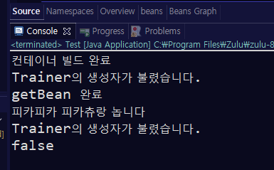 위 사진의 콘솔창을 보면 "컨테이너 빌드 완료" 가 출력 되기 전에 "Trainer의 생성자가 불렸습니다"가 출력 되었으니
