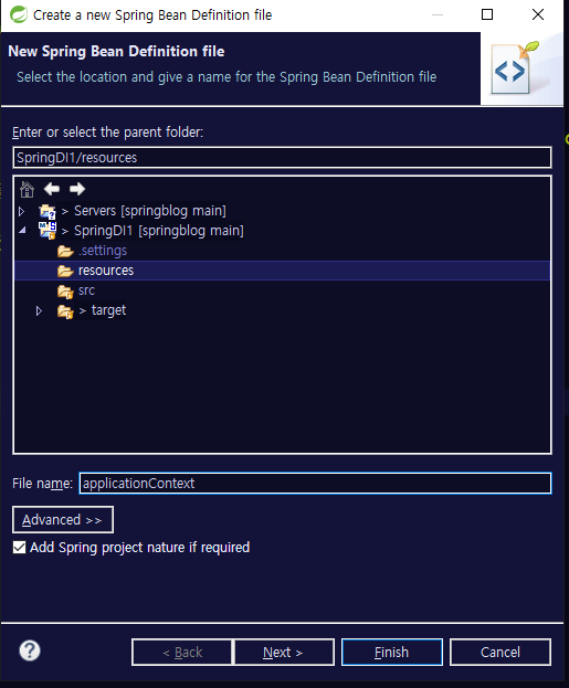 bean 객체의 등록은 스프링 설정 파일에서 합니다. 그럼 일단 스프링 설정파일을 만들어야겠죠