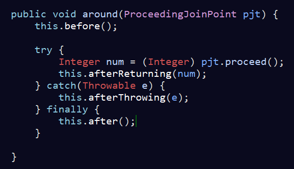 MyAspect에서 around() 메소드를 추가하겠습니다