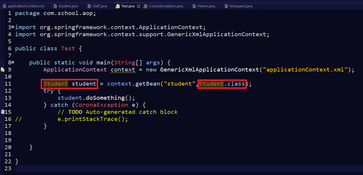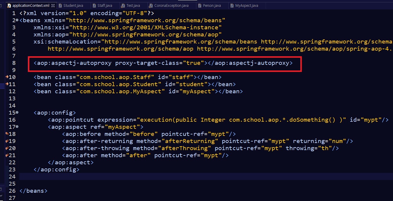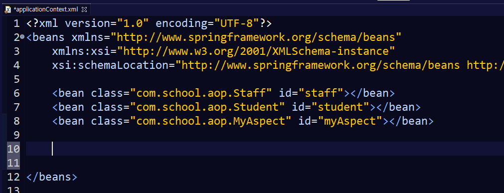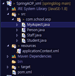 Staff, Studnet, MyAspect를 빈 객체로 등록합니다