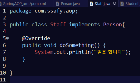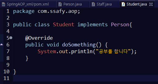 이번에는 xml로 설정하는거니까 xml 파일로가서 pointcut을 지정하겠습니다
