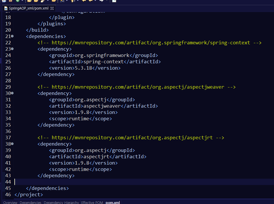 SpringAOP_xml 프로젝트를 만들어서 메이븐 프로젝트로 변환 시켜주세요