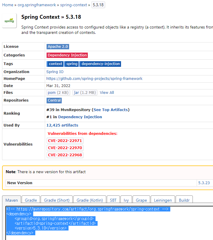 pom.xml 기억 나시죠? </build> 아래줄에 <dependencies></dependencies>를 추가하고 그 사이에 넣을 것들을 MvnRepository(Maven Repository: Search/Browse/Explore (mvnrepository.com))에서 가져오겠습니다