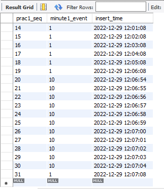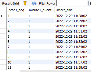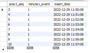 1분마다 데이터를 등록하는 이벤트를 만들어봤습니다